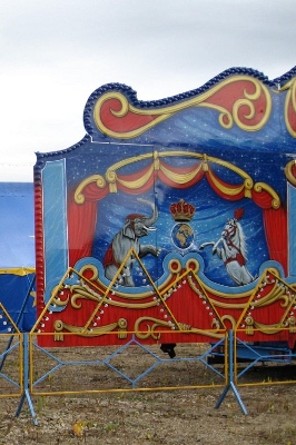 Liebe Leute! Ich bin im Stress. Das ist soweit nichts Neues. Aber, dass sich die Kultur anschickt, vor meiner Haustür zu kampieren, damit ich auch ja nichts verpasse, das ist schon etwas Neues, Erstaunliches. Das war so: Ich schau eines Abends aus meinem Küchenfenster, wo sonst maximal die nahe S-Bahn vorbeirauscht oder jetzt im Herbst Wildgänse am Himmel flattern und kreischen. Da leuchten irgendwo im Nirgendwo Lichtersträhnen nach der Art, wie geschmückte Pferde sie auf dem Haupt tragen. Das konnte an sich nur Zirkus sein. Aber auf dem ollen Betriebsgelände, auf dem sich kaum ein paar Pionierkräuter behaupten können?